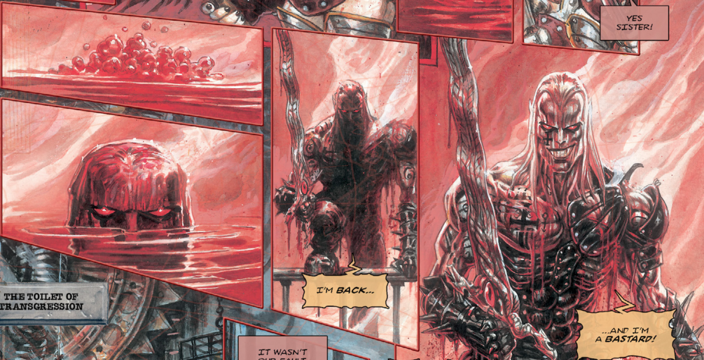The Convent of the Sisters of Blood continues to wow with stunning painted art, featuring a Hieronymus Bosch-esque vertical spread of Thurim's personal hell, and includes a gallery of selected unlettered artwork.