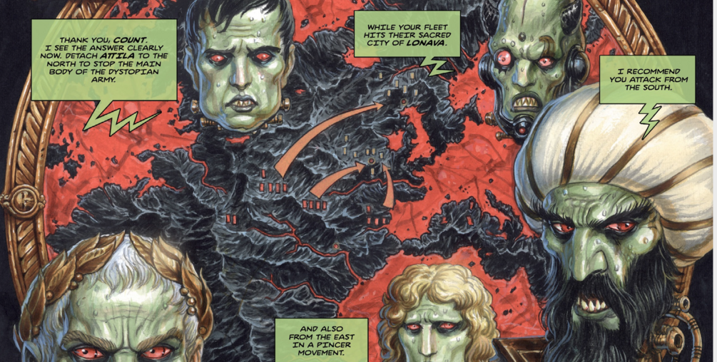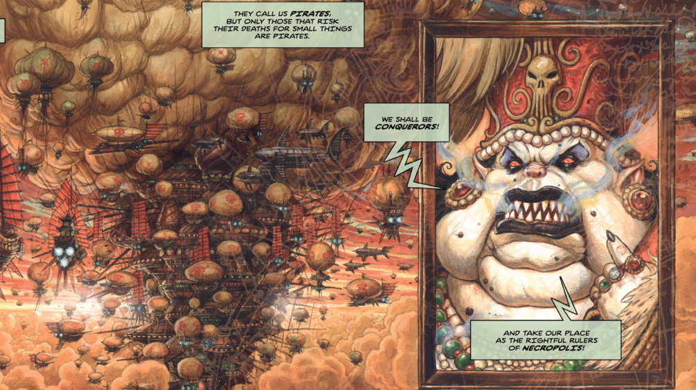 But the vibe is abruptly shattered when Dracula's Witnesses descend on his mansion, and Edgar violently murdered and dispatched to Resurrection, where his talents serve him well as Obergrosse Pirate Mitra ...